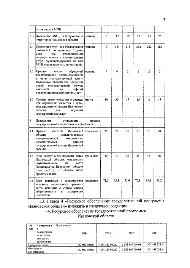 Постановление Правительства Ивановской области от 31.12.2014 N 591-п "О внесении изменений в постановление Правительства Ивановской области от 13.11.2013 N 454-п "Об утверждении государственной программы Ивановской области "Совершенствование институтов государственного управления и местного самоуправления Ивановской области" (вместе с "Подпрограммой "Обеспечение деятельности органов государственной власти Ивановской области", "Подпрограммой "Информационная открытость органов государственной власти Ивановской области", "Подпрограммой "Общественный контроль и экспертная поддержка органов государственной власти Ивановской области", "Подпрограммой "Поддержка социально ориентированных некоммерческих организаций", "Подпрограммой "Укрепление кадрового потенциала государственной службы Ивановской области", "Подпрограммой "Организация дополнительного пенсионного обеспечения отдельных категорий граждан", "Подпрограммой "Вручение государственных наград Российской Федерации, наград Ивановской области и выплата вознаграждений к ним, выплата премий к Почетным грамотам и других премий", "Подпрограммой "Эффективный муниципалитет", "Подпрограммой "Оценка регулирующего воздействия", "Подпрограммой "Организация предоставления государственных и муниципальных услуг на базе областного государственного бюджетного учреждения "Многофункциональный центр предоставления государственных и муниципальных услуг", "Подпрограммой "Организационная и консультационная поддержка национально-культурных автономий и общественных организаций", "Подпрограммой "Обеспечение деятельности мировых судей и аппаратов мировых судей Ивановской области")