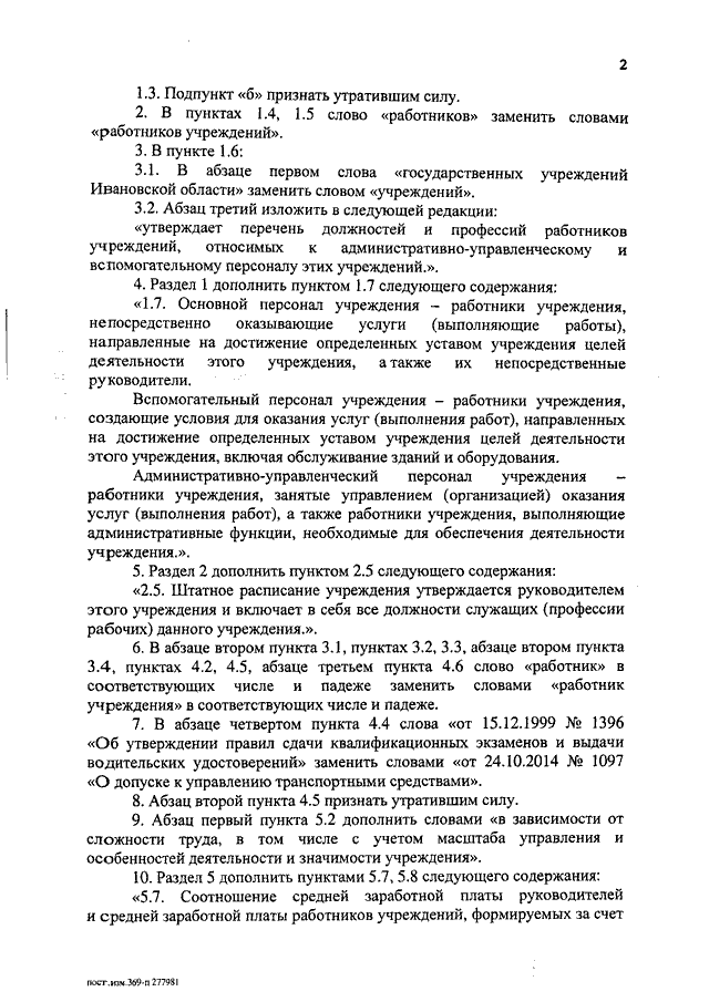 Постановление Правительства Ивановской области от 31.12.2014 N 595-п "О внесении изменений в постановление Правительства Ивановской области от 31.12.2008 N 369-п "О системах оплаты труда работников государственных учреждений Ивановской области, подведомственных службе по охране объектов животного мира Ивановской области"