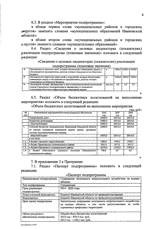 Постановление Правительства Ивановской области от 31.12.2014 N 608-п "О внесении изменений в постановление Правительства Ивановской области от 30.10.2013 N 430-п "Об утверждении государственной программы Ивановской области "Развитие водохозяйственного комплекса Ивановской области"