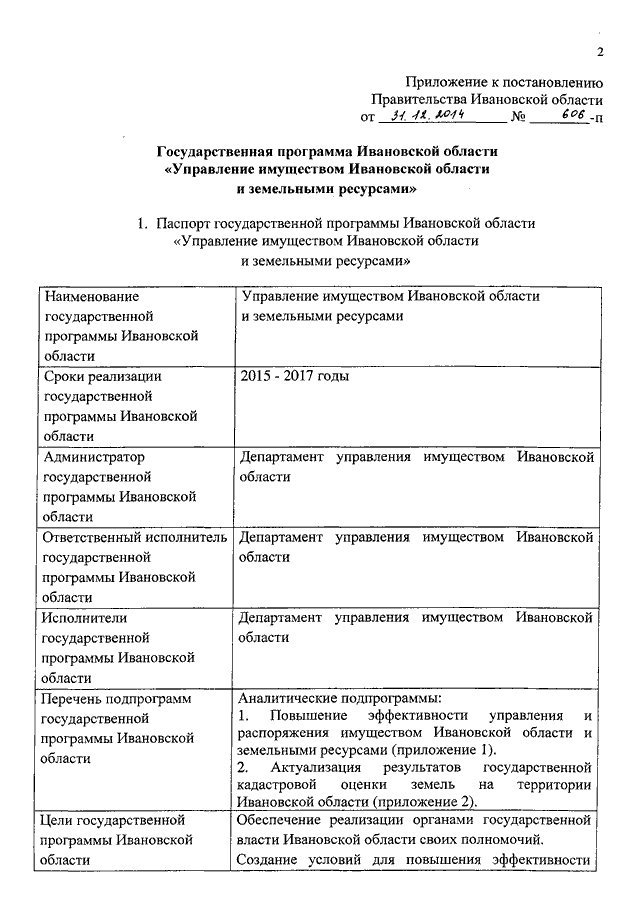 Постановление Правительства Ивановской области от 31.12.2014 N 606-п "Об утверждении государственной программы Ивановской области "Управление имуществом Ивановской области и земельными ресурсами"