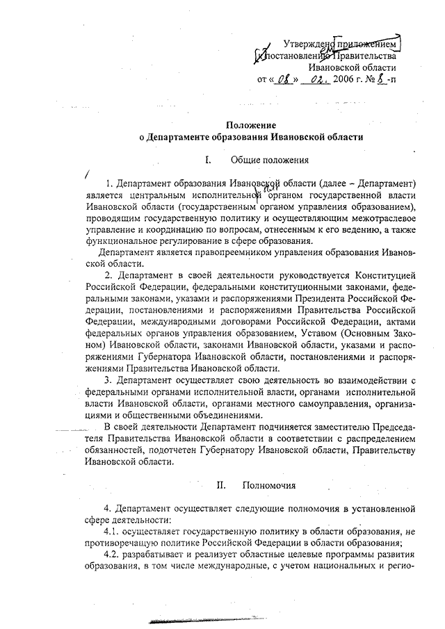 Постановление Правительства Ивановской области от 08.02.2006 N 8-п "Об утверждении Положения о Департаменте образования Ивановской области"