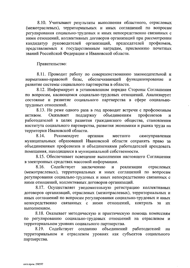 "Соглашение по регулированию социально-трудовых и связанных с ними экономических отношений между Правительством Ивановской области, областным объединением организаций профессиональных союзов, областным объединением работодателей на 2015 - 2017 годы" (Заключено 26.12.2014 N 109-с) (вместе с "Перечнем основных показателей прогноза социально-экономического развития Ивановской области и проекта областного бюджета, по которым проводятся консультации Сторон", "Рекомендациями областной трехсторонней комиссии по регулированию социально-трудовых отношений представителям работников и работодателей по включению положений в коллективный договор организации, отраслевые (межотраслевые), территориальные и иные соглашения по вопросам регулирования социально-трудовых и иных непосредственно связанных с ними отношений")