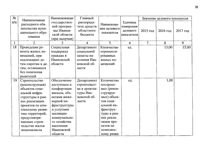Постановление Правительства Ивановской области от 16.01.2015 N 2-п "Об утверждении перечня расходных обязательств муниципальных образований Ивановской области, возникающих при выполнении полномочий органов местного самоуправления по вопросам местного значения, в целях софинансирования которых предоставляются субсидии из областного бюджета, целевых показателей результативности предоставления субсидий и их значений на 2015 - 2017 годы"