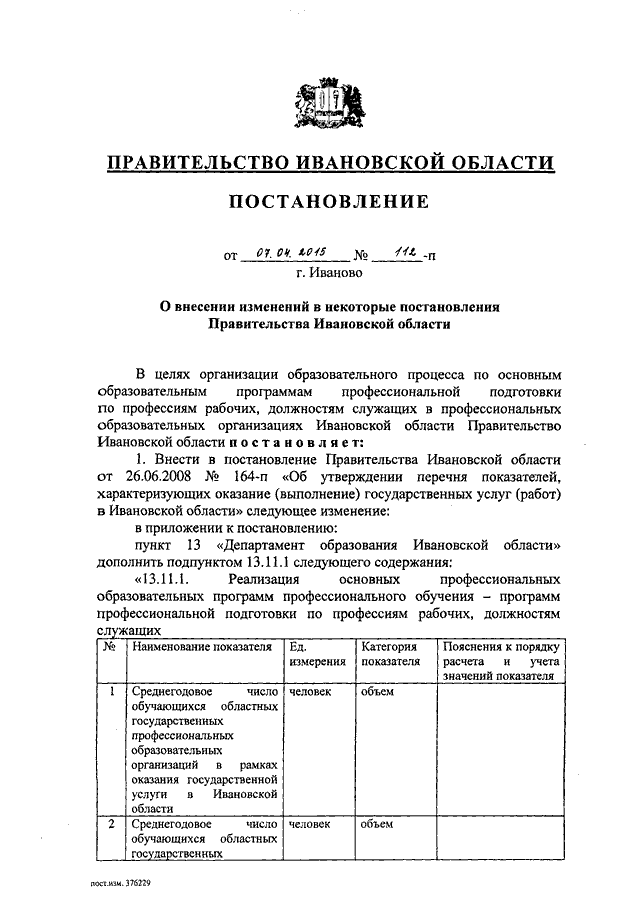 Постановление Правительства Ивановской области от 07.04.2015 N 112-п "О внесении изменений в некоторые постановления Правительства Ивановской области"