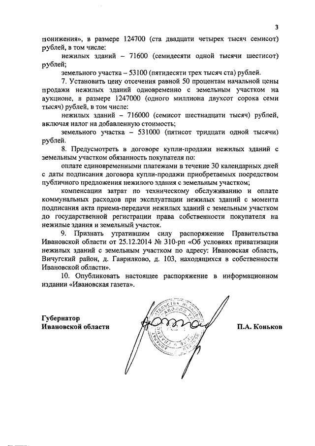 Распоряжение Правительства Ивановской области от 15.04.2015 N 81-рп "Об условиях приватизации нежилых зданий с земельным участком по адресу: Ивановская область, Вичугский район, д. Гаврилково, д. 103, находящихся в собственности Ивановской области"