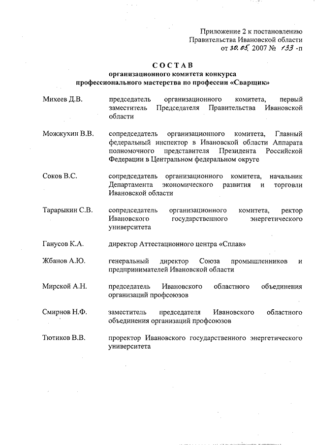 Постановление Правительства Ивановской области от 30.05.2007 N 133-п "О проведении конкурса профессионального мастерства по профессии "Сварщик" (вместе с "Положением о конкурсе профессионального мастерства по профессии "Сварщик", "Положением о командном первенстве за переходящий приз имени Н.Н. Бенардоса")
