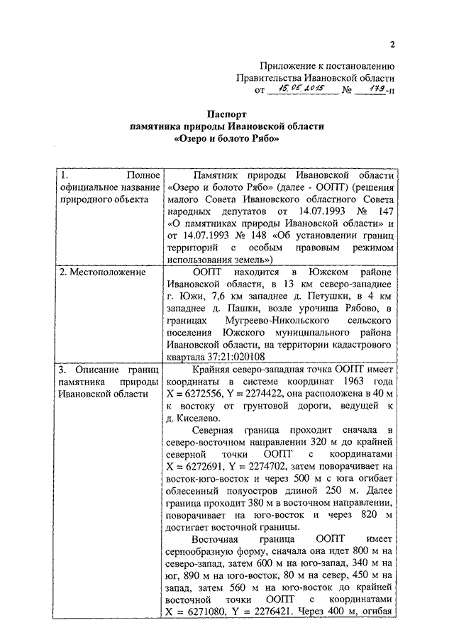 Постановление Правительства Ивановской области от 15.05.2015 N 179-п "О памятнике природы Ивановской области "Озеро и болото Рябо" (вместе с "Паспортом памятника природы Ивановской области "Озеро и болото Рябо")
