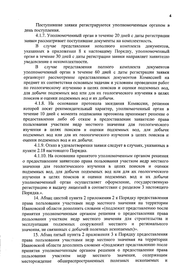 Постановление Правительства Ивановской области от 02.06.2015 N 223-п "О внесении изменений в постановление Правительства Ивановской области от 11.10.2012 N 384-п "О Порядке предоставления права пользования участками недр местного значения на территории Ивановской области" (вместе с "Перечнем документов, предоставляемых в уполномоченный орган для предоставления права пользования участком недр местного значения для геологического изучения в целях поисков и оценки подземных вод, для добычи подземных вод или для геологического изучения в целях поисков и оценки подземных вод и их добычи")