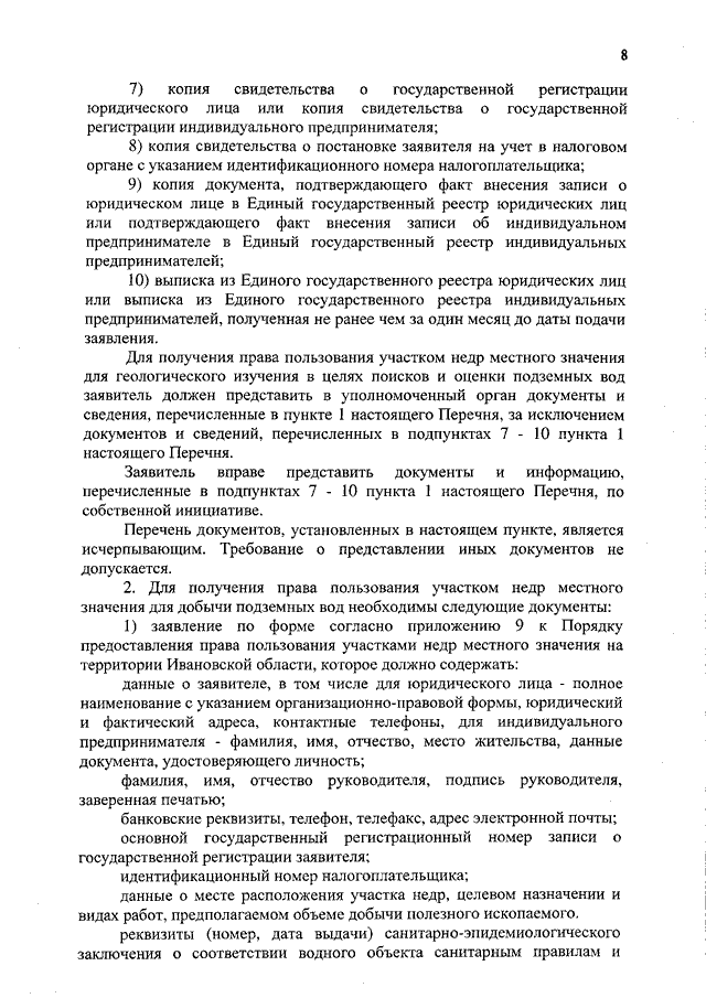 Постановление Правительства Ивановской области от 02.06.2015 N 223-п "О внесении изменений в постановление Правительства Ивановской области от 11.10.2012 N 384-п "О Порядке предоставления права пользования участками недр местного значения на территории Ивановской области" (вместе с "Перечнем документов, предоставляемых в уполномоченный орган для предоставления права пользования участком недр местного значения для геологического изучения в целях поисков и оценки подземных вод, для добычи подземных вод или для геологического изучения в целях поисков и оценки подземных вод и их добычи")