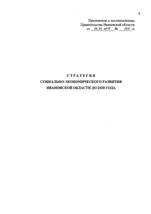 Постановление Правительства Ивановской области от 04.06.2015 N 240-п "Об утверждении Стратегии социально-экономического развития Ивановской области до 2020 года"