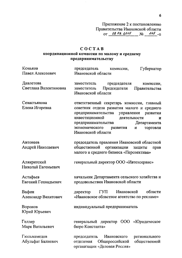 Постановление Правительства Ивановской области от 09.06.2015 N 245-п "О координационной комиссии по малому и среднему предпринимательству" (вместе с "Положением о координационной комиссии по малому и среднему предпринимательству")