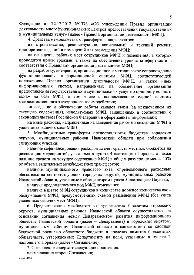 Постановление Правительства Ивановской области от 10.06.2015 N 249-п "О внесении изменений в постановление Правительства Ивановской области от 13.11.2013 N 454-п "Об утверждении государственной программы Ивановской области "Совершенствование институтов государственного управления и местного самоуправления Ивановской области" (вместе с "Порядком предоставления из областного бюджета бюджетам городских округов, муниципальных районов Ивановской области иных межбюджетных трансфертов на завершение работ по созданию сети многофункциональных центров предоставления государственных и муниципальных услуг")