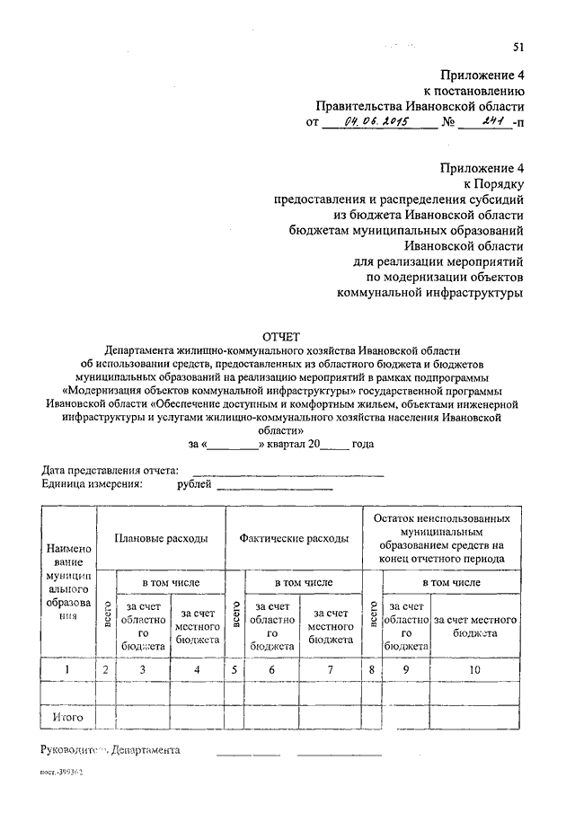Постановление Правительства Ивановской области от 04.06.2015 N 241-п "О внесении изменений в постановление Правительства Ивановской области от 13.11.2013 N 458-п "Об утверждении государственной программы Ивановской области "Обеспечение доступным и комфортным жильем, объектами инженерной инфраструктуры и услугами жилищно-коммунального хозяйства населения Ивановской области" (вместе с "Подпрограммой "Реализация мероприятий по обеспечению населения Ивановской области теплоснабжением, водоснабжением, водоотведением и очисткой сточных вод")
