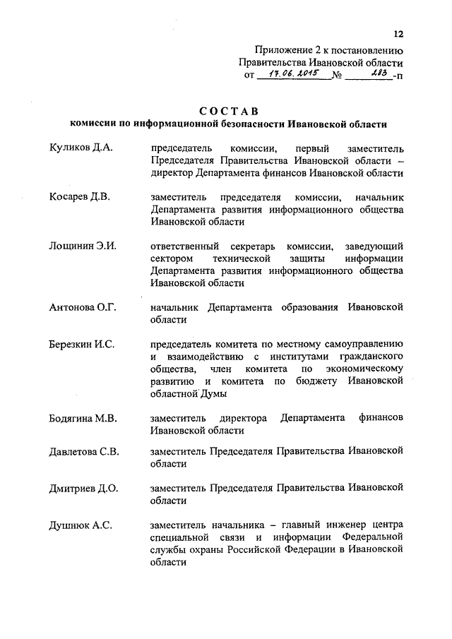 Постановление Правительства Ивановской области от 17.06.2015 N 283-п "О комиссии по информационной безопасности Ивановской области" (вместе с "Положением о комиссии по информационной безопасности Ивановской области")