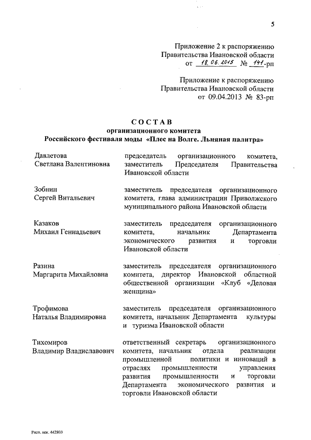 Распоряжение Правительства Ивановской области от 18.06.2015 N 141-рп "О внесении изменений в некоторые распоряжения Правительства Ивановской области"