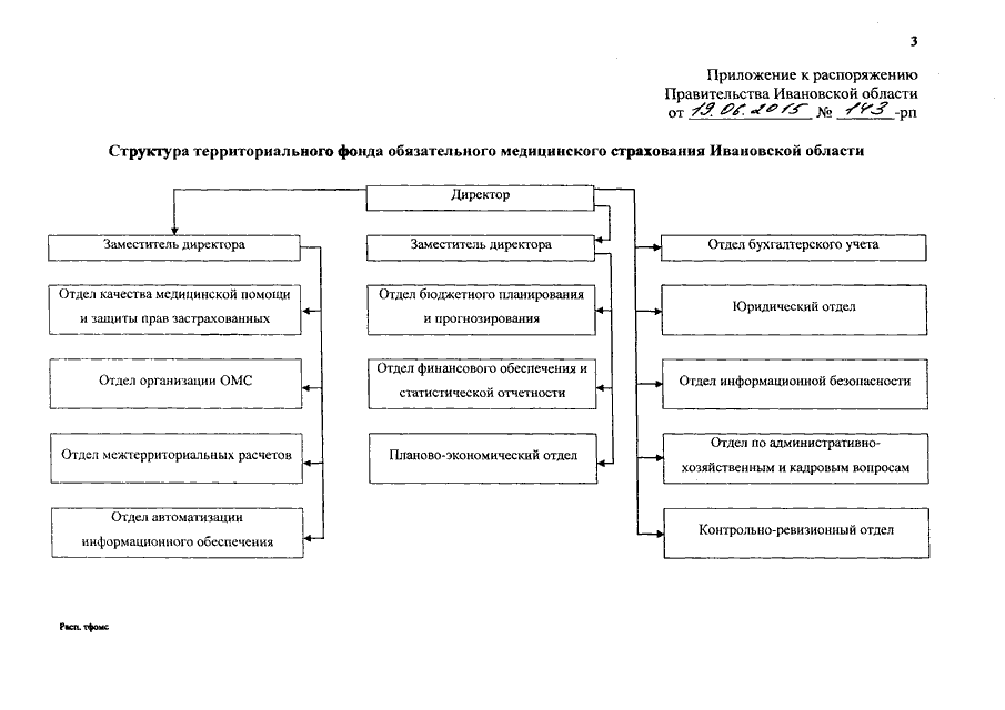 Распоряжение Правительства Ивановской области от 19.06.2015 N 143-рп "Об утверждении структуры, предельной численности и фонда оплаты труда территориального фонда обязательного медицинского страхования Ивановской области"