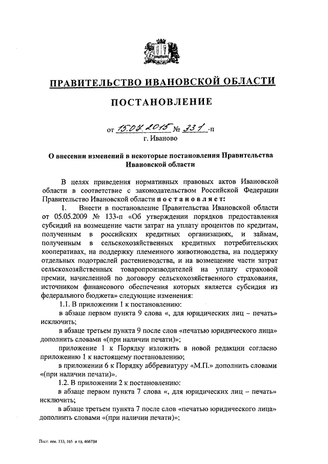 Постановление Правительства Ивановской области от 15.07.2015 N 331-п "О внесении изменений в некоторые постановления Правительства Ивановской области"