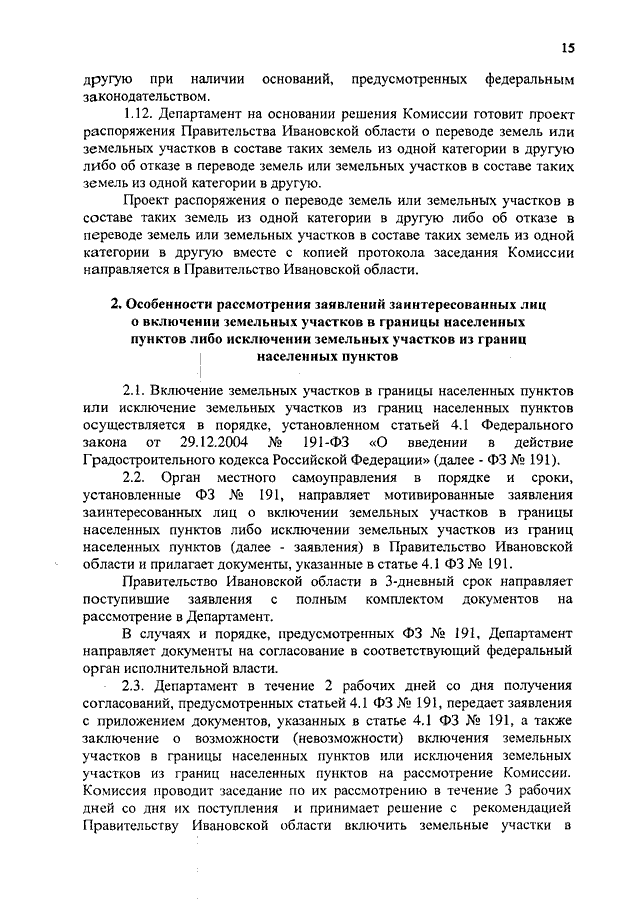 Постановление Правительства Ивановской области от 05.10.2015 N 455-п "О реализации полномочий в сфере земельных отношений" (вместе с "Положением о межведомственной комиссии по реализации полномочий в сфере земельных отношений", "Порядком рассмотрения ходатайств о переводе земель или земельных участков в составе таких земель из одной категории в другую и заявлений о включении земельных участков в границы населенных пунктов либо об исключении земельных участков из границ населенных пунктов", "Перечнем исполнительных органов государственной власти Ивановской области, рассматривающих проекты документов территориального планирования")