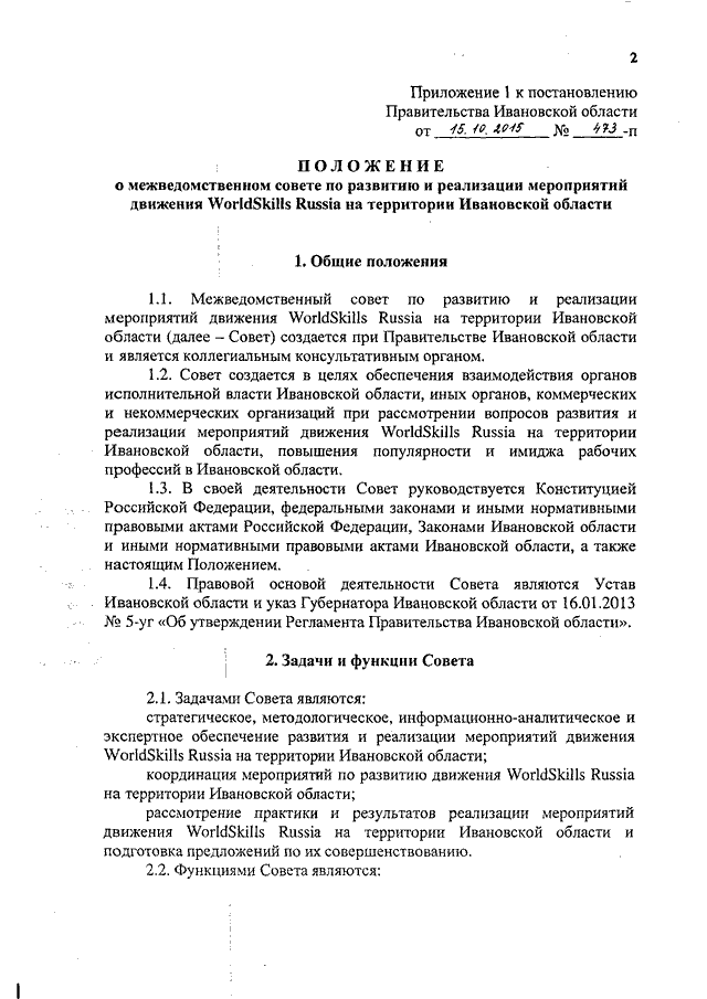Постановление Правительства Ивановской области от 15.10.2015 N 473-п "Об образовании межведомственного совета по развитию и реализации мероприятий движения WorldSkills Russia на территории Ивановской области" (вместе с "Положением о межведомственном совете по развитию и реализации мероприятий движения WorldSkills Russia на территории Ивановской области")