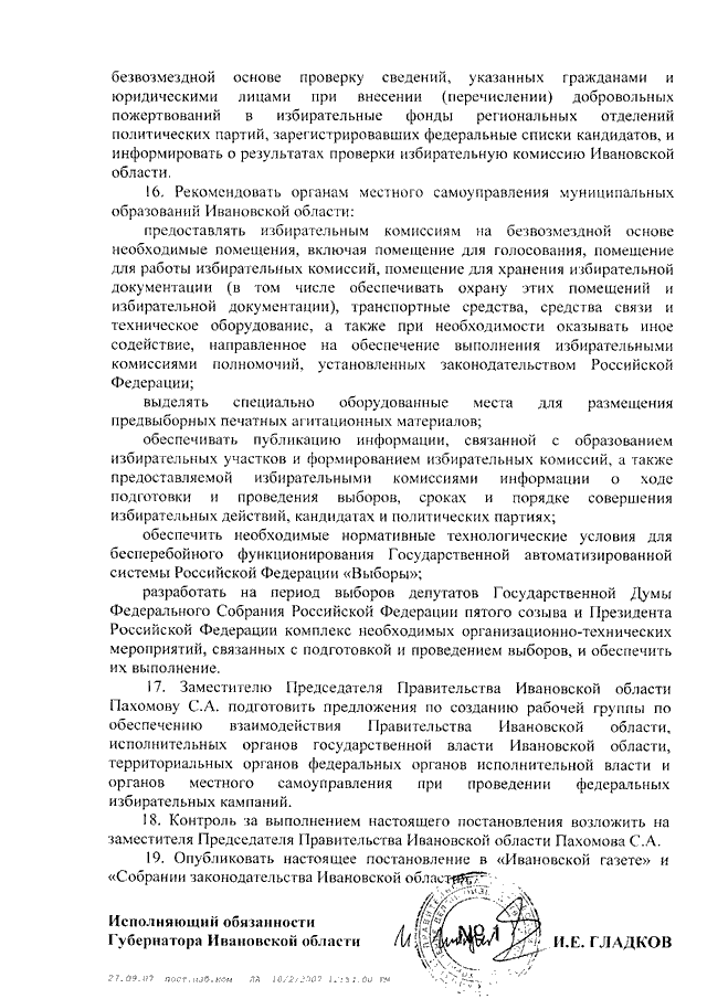 Постановление Правительства Ивановской области от 03.10.2007 N 206-п "О мерах по оказанию содействия избирательным комиссиям в реализации их полномочий при подготовке и проведении выборов депутатов Государственной Думы Федерального Собрания Российской Федерации пятого созыва и Президента Российской Федерации"