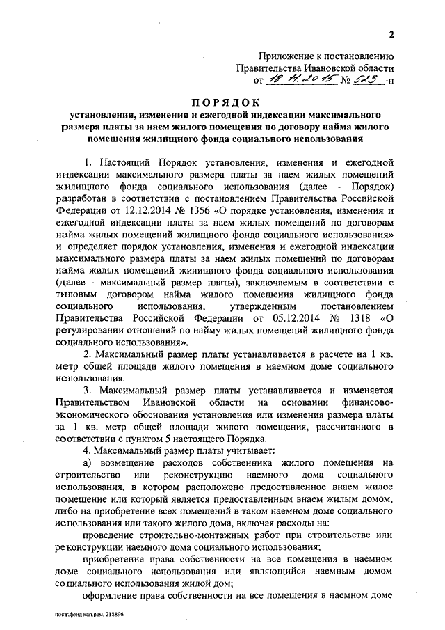 Постановление Правительства Ивановской области от 18.11.2015 N 523-п "Об утверждении Порядка установления, изменения и ежегодной индексации максимального размера платы за наем жилого помещения по договору найма жилого помещения жилищного фонда социального использования"