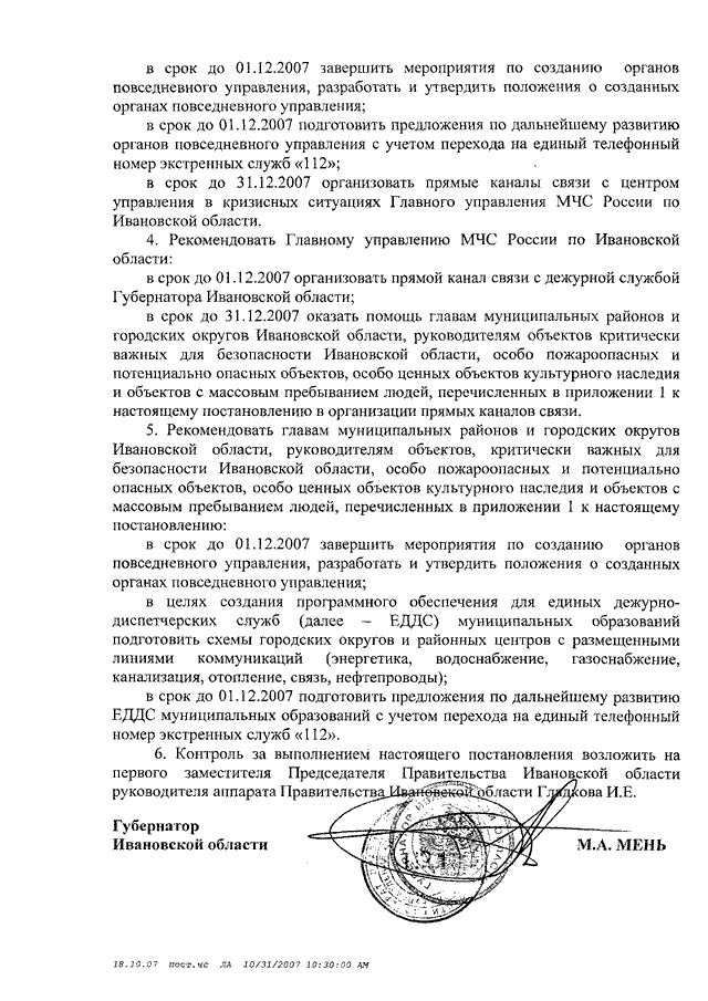 Постановление Правительства Ивановской области от 07.11.2007 N 223-п "Об организации функционирования органов повседневного управления Ивановской областной подсистемы единой государственной системы предупреждения и ликвидации чрезвычайных ситуаций" (вместе с "Порядком функционирования органов повседневного управления Ивановской областной подсистемы единой государственной системы предупреждения и ликвидации чрезвычайных ситуаций")