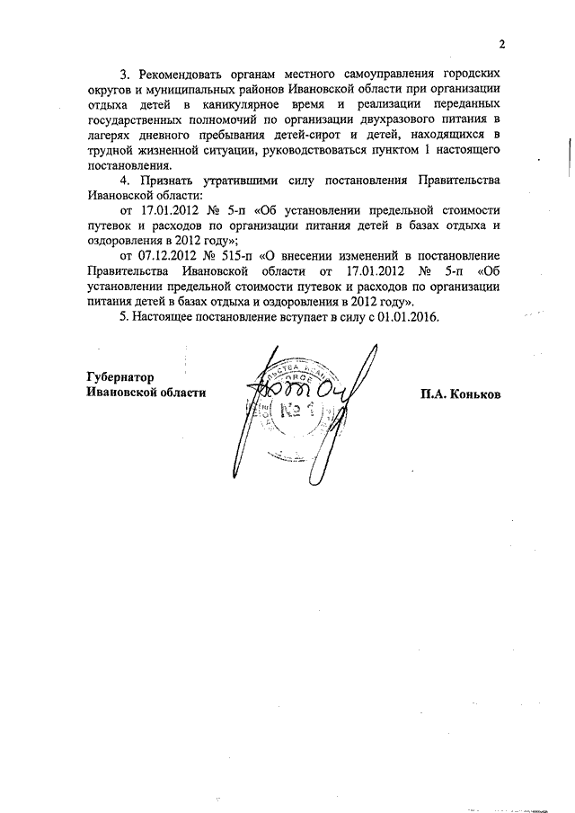 Постановление Правительства Ивановской области от 25.12.2015 N 603-п "Об установлении в 2016 - 2018 годах размера стоимости путевок в детские лагеря сезонного и круглогодичного действия и расходов по организации питания детей в лагерях дневного пребывания за счет средств областного бюджета"