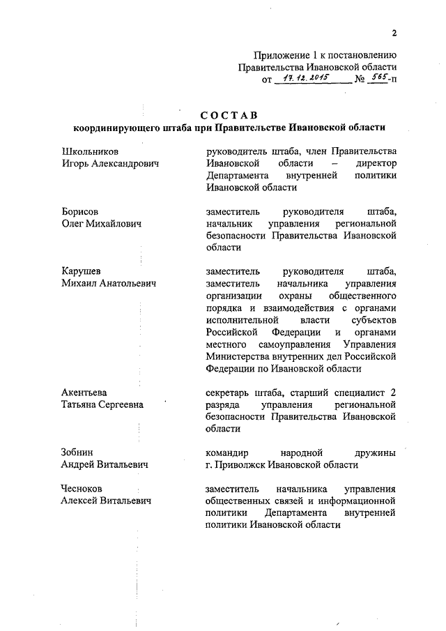 Постановление Правительства Ивановской области от 17.12.2015 N 565-п "О координирующем штабе при Правительстве Ивановской области" (вместе с "Положением о координирующем штабе при Правительстве Ивановской области")
