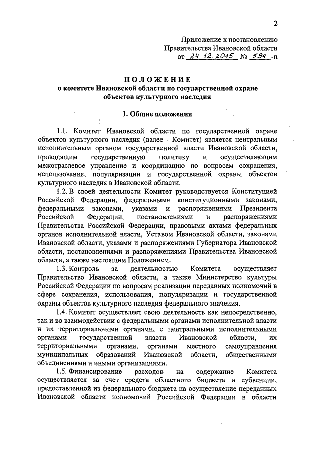 Постановление Правительства Ивановской области от 24.12.2015 N 594-п "Об утверждении Положения о комитете Ивановской области по государственной охране объектов культурного наследия"