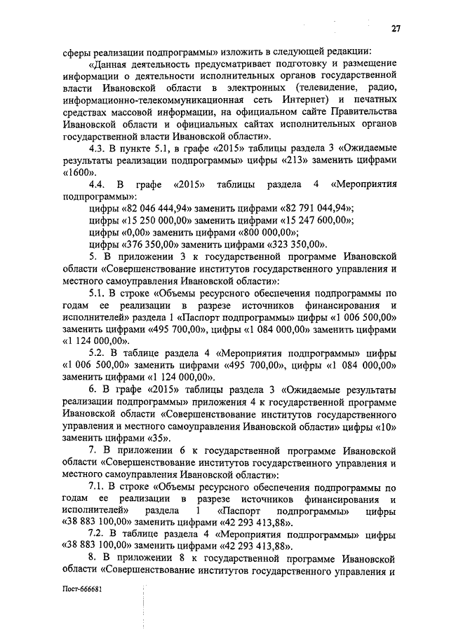 Постановление Правительства Ивановской области от 29.12.2015 N 615-п "О внесении изменений в постановление Правительства Ивановской области от 13.11.2013 N 454-п "Об утверждении государственной программы Ивановской области "Совершенствование институтов государственного управления и местного самоуправления Ивановской области"