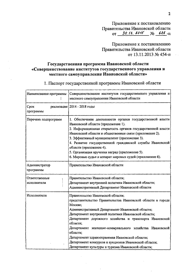 Постановление Правительства Ивановской области от 30.12.2015 N 626-п "О внесении изменения в постановление Правительства Ивановской области от 13.11.2013 N 454-п "Об утверждении государственной программы Ивановской области "Совершенствование институтов государственного управления и местного самоуправления Ивановской области"