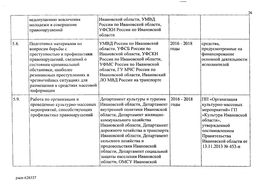 Распоряжение Правительства Ивановской области от 30.12.2015 N 314-рп "Об утверждении плана (программы) межведомственных мероприятий по профилактике правонарушений и борьбе с преступностью на территории Ивановской области на 2016 - 2018 годы"