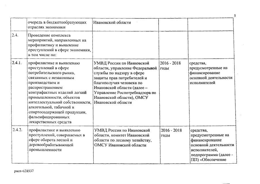 Распоряжение Правительства Ивановской области от 30.12.2015 N 314-рп "Об утверждении плана (программы) межведомственных мероприятий по профилактике правонарушений и борьбе с преступностью на территории Ивановской области на 2016 - 2018 годы"