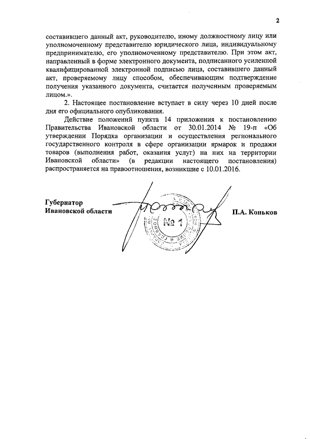 Постановление Правительства Ивановской области от 21.01.2016 N 16-п "О внесении изменений в постановление Правительства Ивановской области от 30.01.2014 N 19-п "Об утверждении Порядка организации и осуществления регионального государственного контроля в сфере организации ярмарок и продажи товаров (выполнения работ, оказания услуг) на них на территории Ивановской области"
