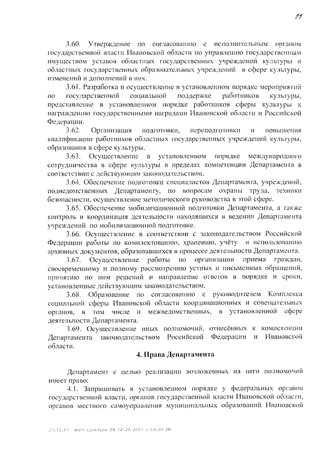 Постановление Правительства Ивановской области от 26.12.2007 N 255-п "Об утверждении Положения о Департаменте культуры и культурного наследия Ивановской области"