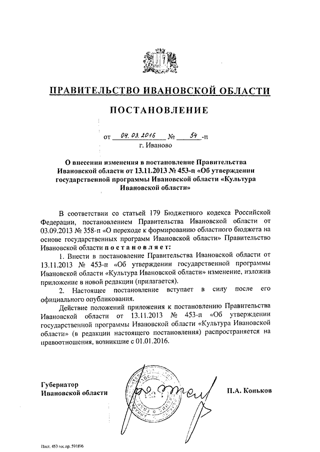 Постановление Правительства Ивановской области от 04.03.2016 N 54-п "О внесении изменения в постановление Правительства Ивановской области от 13.11.2013 N 453-п "Об утверждении государственной программы Ивановской области "Культура Ивановской области"