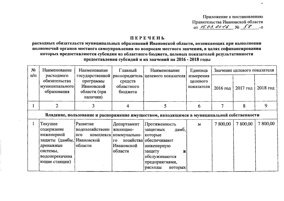 Постановление Правительства Ивановской области от 15.03.2016 N 58-п "Об утверждении перечня расходных обязательств муниципальных образований Ивановской области, возникающих при выполнении полномочий органов местного самоуправления по вопросам местного значения, в целях софинансирования которых предоставляются субсидии из областного бюджета, целевых показателей результативности предоставления субсидий и их значений на 2016 - 2018 годы"