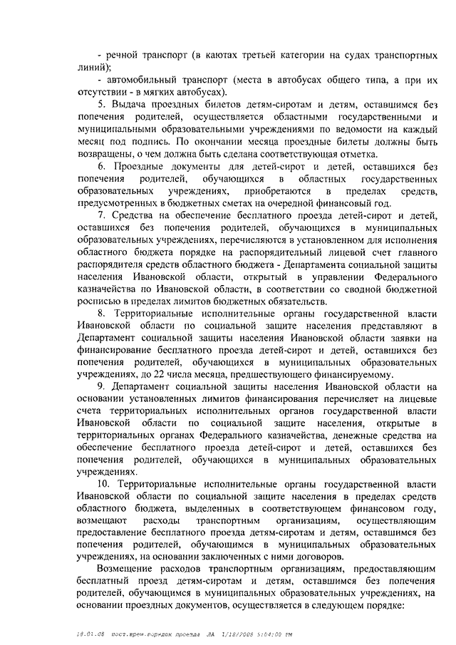 Постановление Правительства Ивановской области от 23.01.2008 N 12-п "Об утверждении Временного порядка предоставления бесплатного проезда детям-сиротам и детям, оставшимся без попечения родителей, обучающимся в областных государственных и муниципальных образовательных учреждениях"
