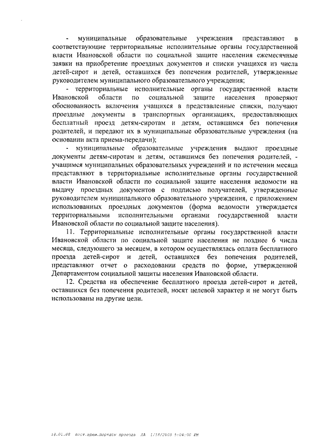 Постановление Правительства Ивановской области от 23.01.2008 N 12-п "Об утверждении Временного порядка предоставления бесплатного проезда детям-сиротам и детям, оставшимся без попечения родителей, обучающимся в областных государственных и муниципальных образовательных учреждениях"