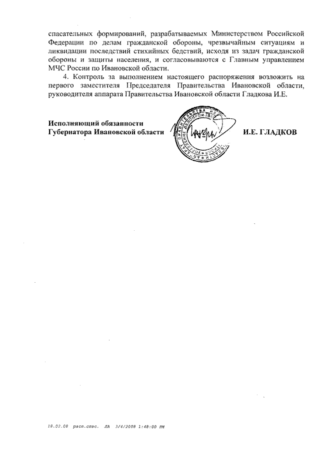 Распоряжение Правительства Ивановской области от 04.03.2008 N 60-рп "О создании нештатных аварийно-спасательных формирований"