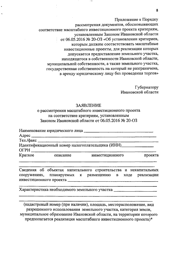 Постановление Правительства Ивановской области от 19.05.2016 N 137-п "О Порядке рассмотрения документов, обосновывающих соответствие масштабного инвестиционного проекта критериям, установленным Законом Ивановской области от 06.05.2016 N 20-ОЗ "Об установлении критериев, которым должны соответствовать масштабные инвестиционные проекты, для реализации которых допускается предоставление земельного участка, находящегося в собственности Ивановской области, муниципальной собственности, а также земельного участка, государственная собственность на который не разграничена, в аренду юридическому лицу без проведения торгов"