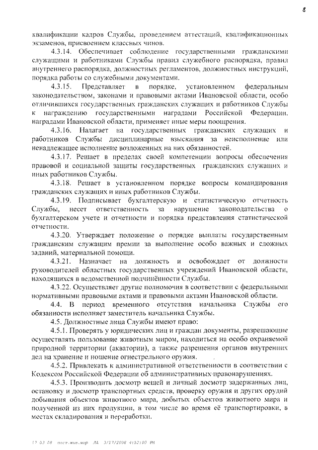 Постановление Правительства Ивановской области от 19.03.2008 N 37-п "О создании службы по охране объектов животного мира Ивановской области" (вместе с "Положением о службе по охране объектов животного мира Ивановской области")