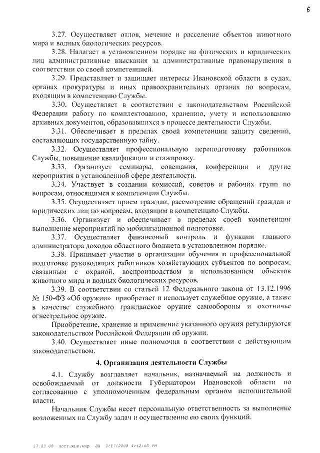 Постановление Правительства Ивановской области от 19.03.2008 N 37-п "О создании службы по охране объектов животного мира Ивановской области" (вместе с "Положением о службе по охране объектов животного мира Ивановской области")