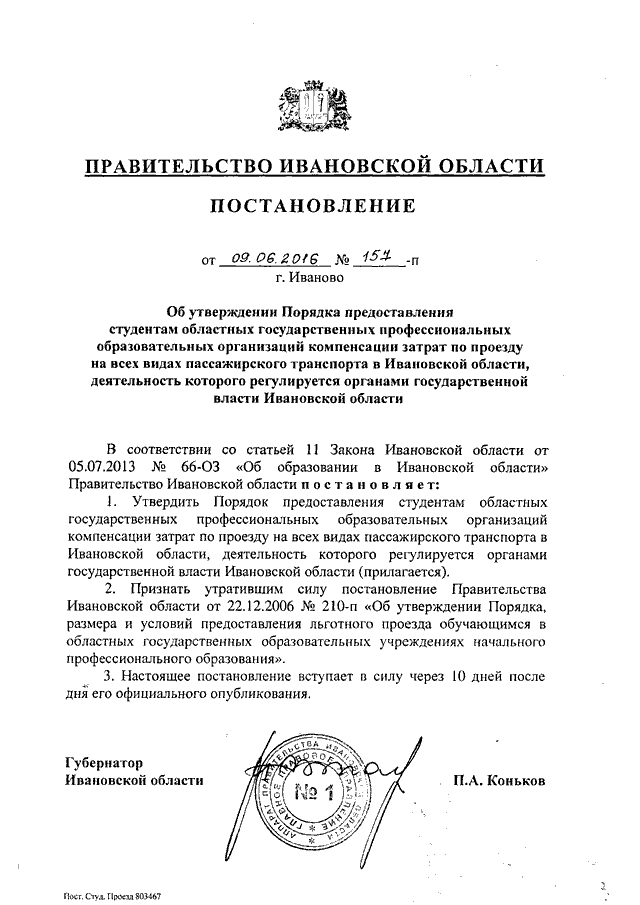 Постановление Правительства Ивановской области от 09.06.2016 N 157-п "Об утверждении Порядка предоставления студентам областных государственных профессиональных образовательных организаций компенсации затрат по проезду на всех видах пассажирского транспорта в Ивановской области, деятельность которого регулируется органами государственной власти Ивановской области"