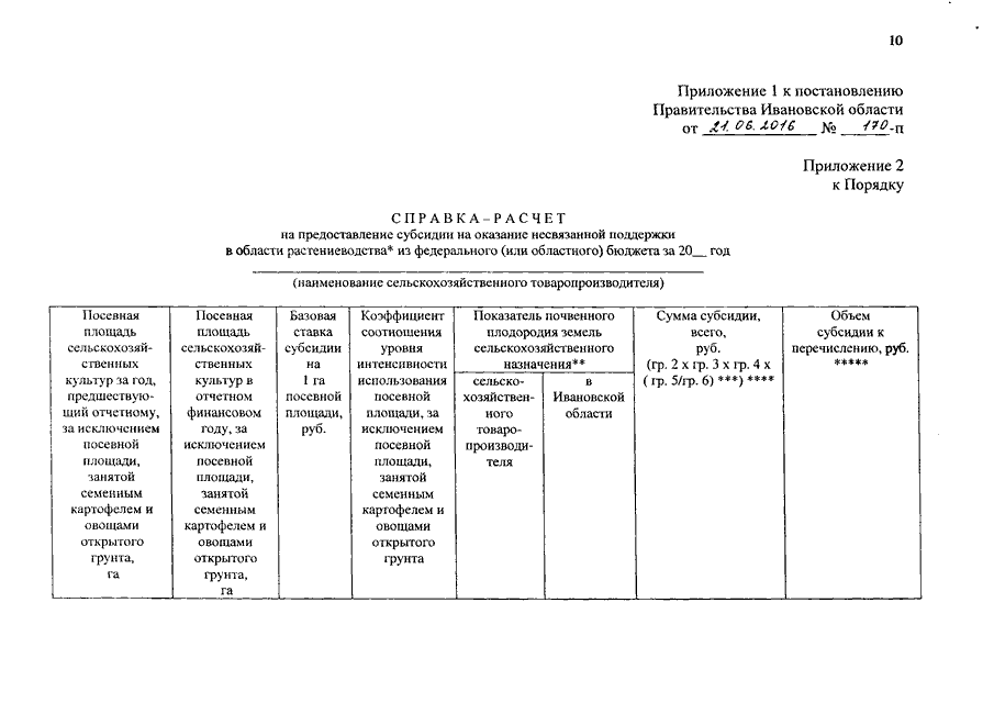 Постановление Правительства Ивановской области от 21.06.2016 N 170-п "О внесении изменений в постановление Правительства Ивановской области от 20.03.2013 N 106-п "Об утверждении Порядка предоставления субсидий на оказание несвязанной поддержки сельскохозяйственным товаропроизводителям в области растениеводства"