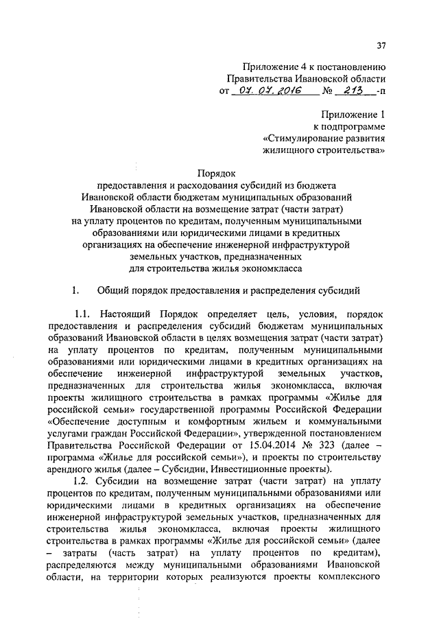 Постановление Правительства Ивановской области от 07.07.2016 N 213-п "О внесении изменений в постановление Правительства Ивановской области от 13.11.2013 N 458-п "Об утверждении государственной программы Ивановской области "Обеспечение доступным и комфортным жильем, объектами инженерной инфраструктуры и услугами жилищно-коммунального хозяйства населения Ивановской области" (вместе с "Порядком предоставления и распределения субсидий из бюджета Ивановской области бюджетам муниципальных образований Ивановской области на разработку (корректировку) проектной документации и газификацию населенных пунктов, объектов социальной инфраструктуры Ивановской области", "Порядком предоставления и расходования субсидий из бюджета Ивановской области бюджетам муниципальных образований Ивановской области на возмещение затрат (части затрат) на уплату процентов по кредитам, полученным муниципальными образованиями или юридическими лицами в кредитных организациях на обеспечение инженерной инфраструктурой земельных участков, предназначенных для строительства жилья экономкласса", "Порядком предоставления и расходования субсидий из бюджета Ивановской области бюджетам муниципальных образований Ивановской области на строительство (реконструкцию) объектов социальной инфраструктуры в рамках реализации проектов по комплексному развитию территорий, предусматривающих строительство жилья экономкласса, на строительство (реконструкцию) автомобильных дорог в новых микрорайонах массовой малоэтажной и многоквартирной застройки жильем экономкласса")