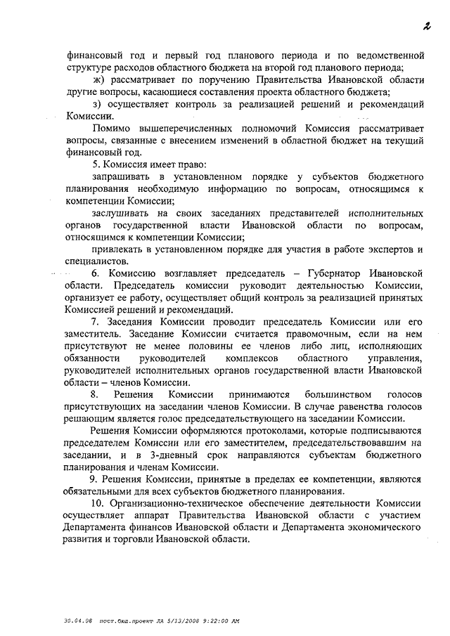 Постановление Правительства Ивановской области от 19.05.2008 N 116-п "О комиссии при Правительстве Ивановской области по бюджетным проектировкам на очередной финансовый год и плановый период" (вместе с "Положением о комиссии при Правительстве Ивановской области по бюджетным проектировкам на очередной финансовый год и плановый период")