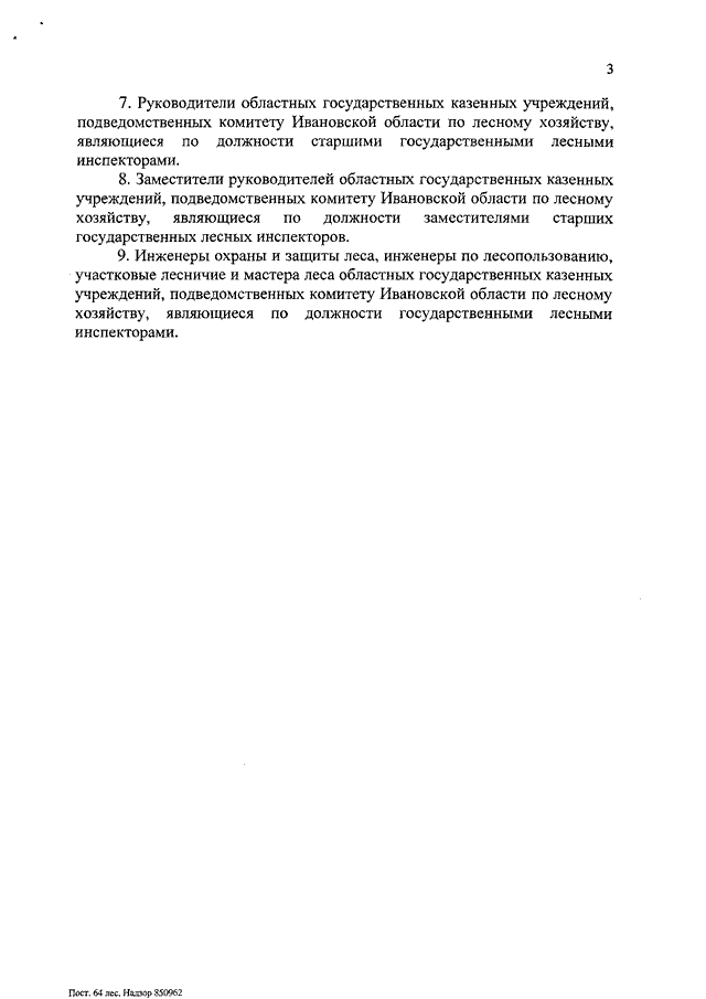 Постановление Правительства Ивановской области от 01.09.2016 N 290-п "О внесении изменений в постановление Правительства Ивановской области от 26.02.2014 N 64-п "Об утверждении перечней должностных лиц, осуществляющих федеральный государственный лесной надзор (лесную охрану) и федеральный государственный пожарный надзор в лесах на территории Ивановской области, за исключением лесов, расположенных на землях обороны и безопасности и землях особо охраняемых природных территорий федерального значения"