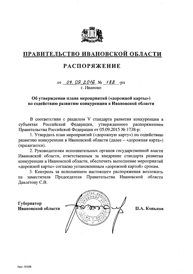 Распоряжение Правительства Ивановской области от 07.09.2016 N 188-рп "Об утверждении плана мероприятий ("дорожной карты") по содействию развитию конкуренции в Ивановской области"