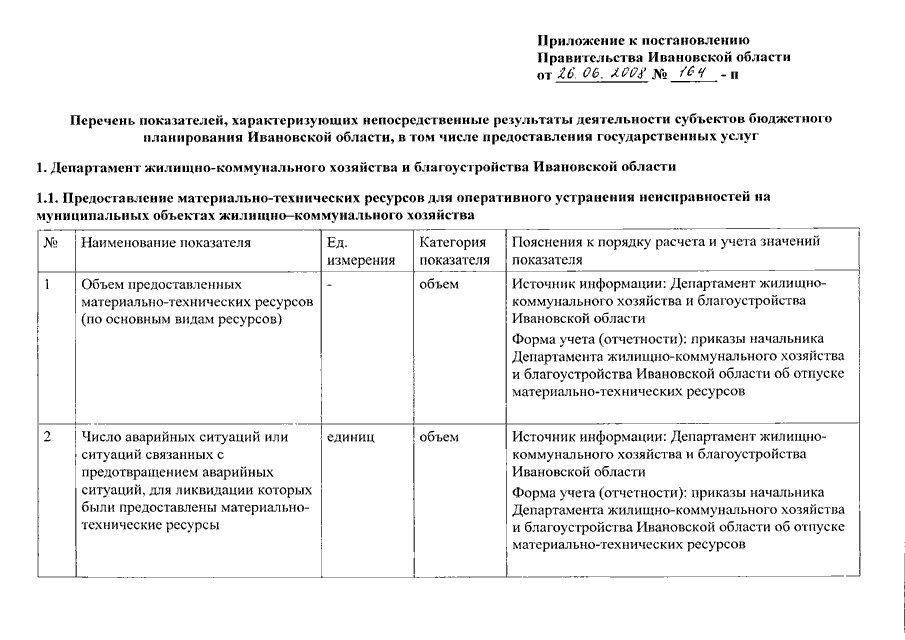 Постановление Правительства Ивановской области от 26.06.2008 N 164-п "Об утверждении перечня показателей, характеризующих непосредственные результаты деятельности субъектов бюджетного планирования Ивановской области, в том числе предоставление государственных услуг"